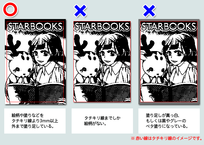 STARBOOKSで一番多い不備は塗り足し・字切れに関することです。