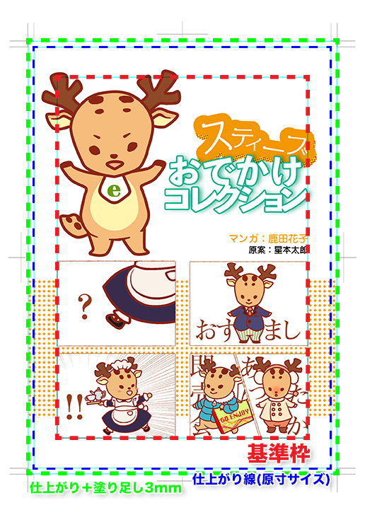 ・塗り足しは、ページ内の絵柄やベタに続くものにしてください。