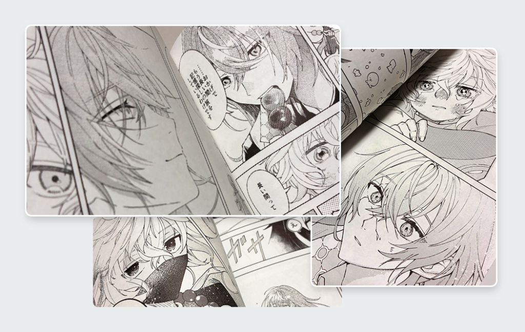 タイトルや中央にあしらわれた銀箔の扱い方が、とても上品で魅力溢れるものになっています。 着彩まで美麗なキャラクターはもちろん、テキストのデザインにもこだわりを感じます。