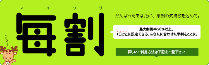 最大割引50%以上!「毎割」納品日合わせですので、どなたでもご利用頂ける早期入稿割引システムです。 |