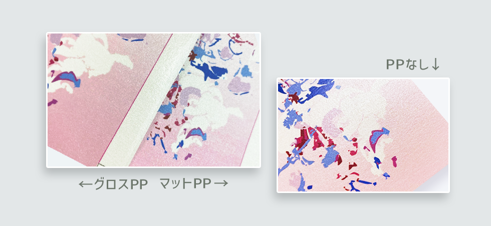 PPなしでは大人しめのパール調の用紙自体にある質感を、直に見て感じることができるかと思います。