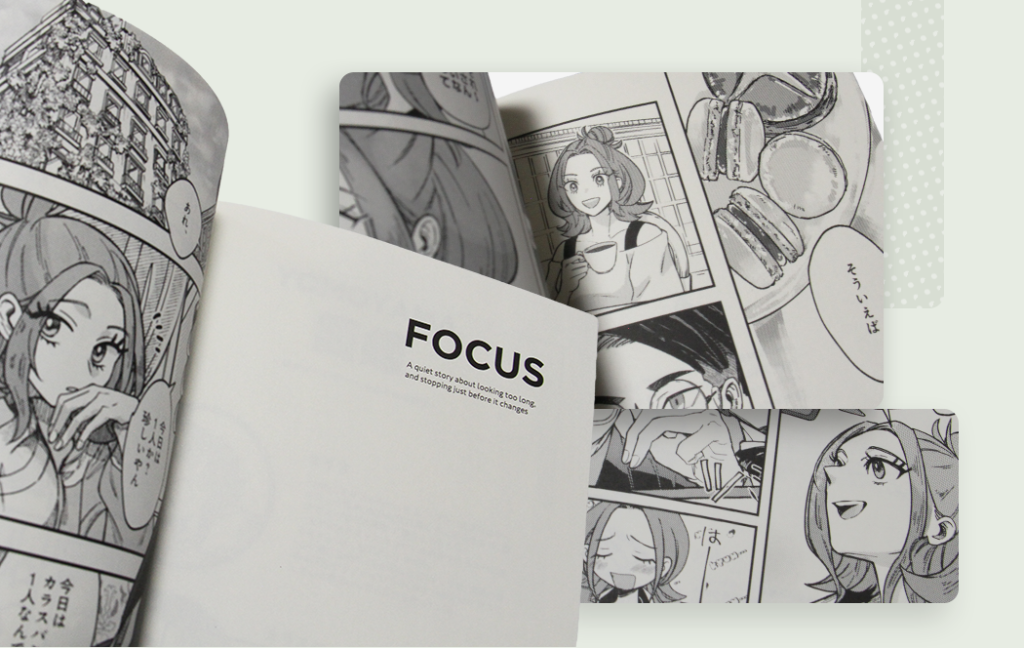 トーンやベタの表現もきめ細やかで、さりげない部分だからこそ、洗練された筆致が感じられます。マットな印刷とも相性がいい、魅力溢れるテイストの作品だと感じます。
