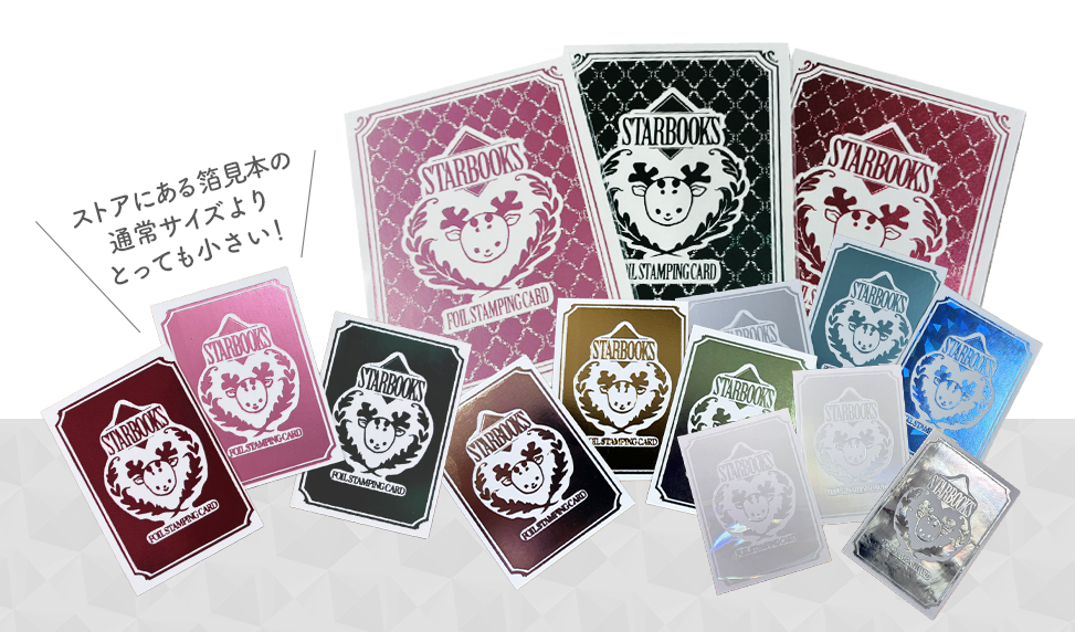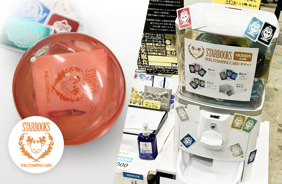 スターブックスストアで販売もしている通常の箔見本と比べて、半分よりも少し小さいサイズとして展開いたしました。イベントではスタブで人気のある箔をスタッフが厳選して、ガチャガチャに詰め込みました。